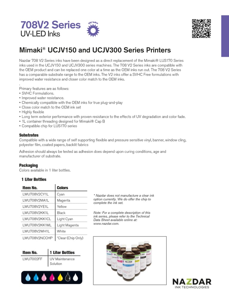 Nazdar 708 Serisi Mürekkep Lus 170 Uyumlu 1Lt Chip